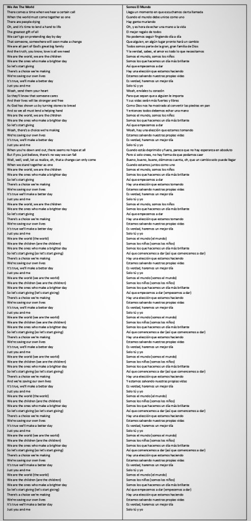 Ese 1985 se gestó, rodó y emitió este maravilloso encuentro entre grandes. Las voces del coro son también de gente maravillosa. La letra, compuesta por Lionel Richie & Michael Jackson, nos refiere a la verdadera motivación de estar hoy, aquí y ahora.